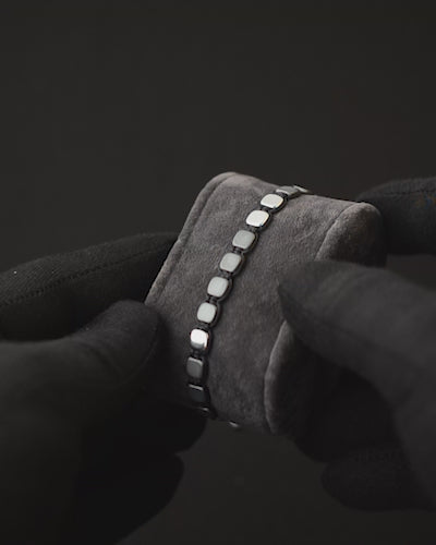- 6 mm kanallı kare kesim mat titanyum ve gümüş renk hematit doğaltaş