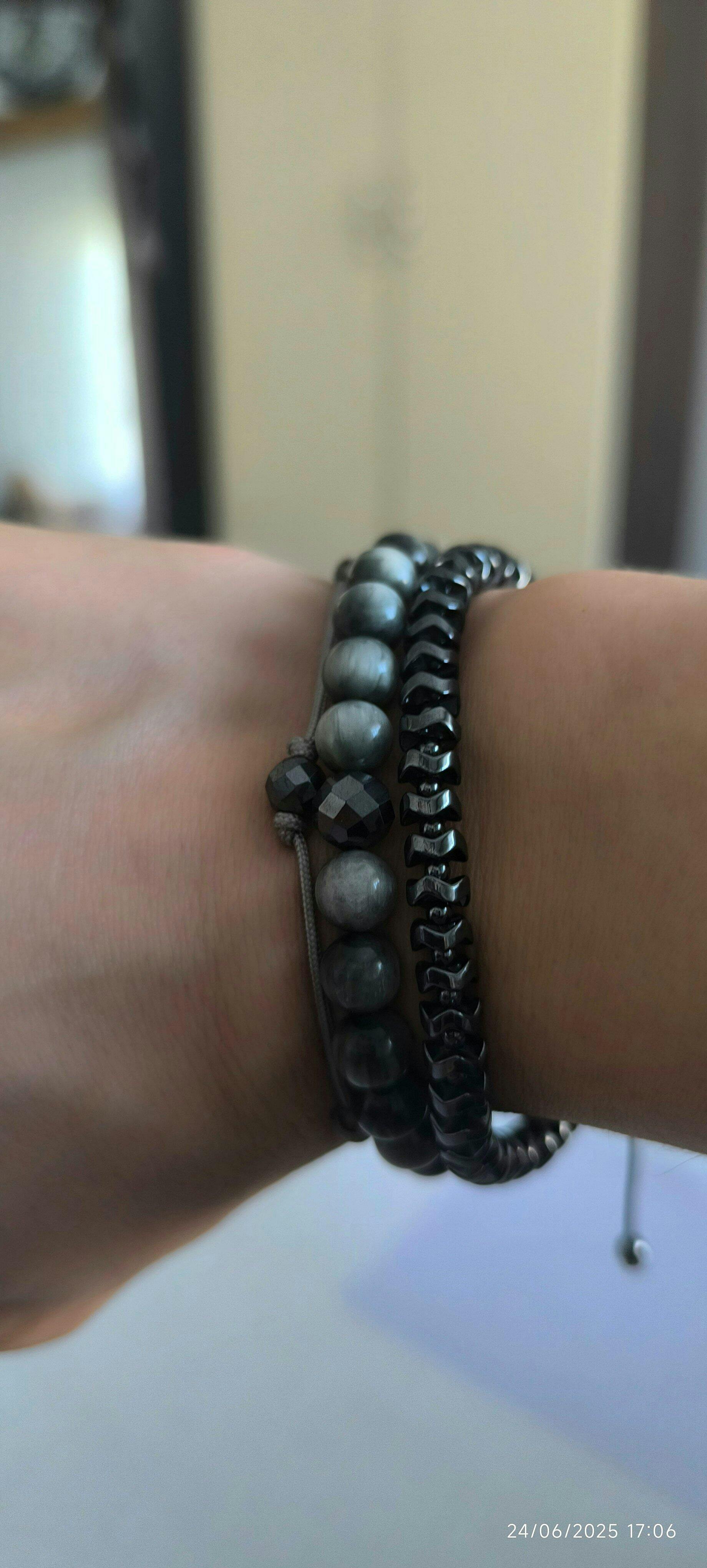 - 7 mm çapraz kesim parlak titanyum renk hematit doğal taş